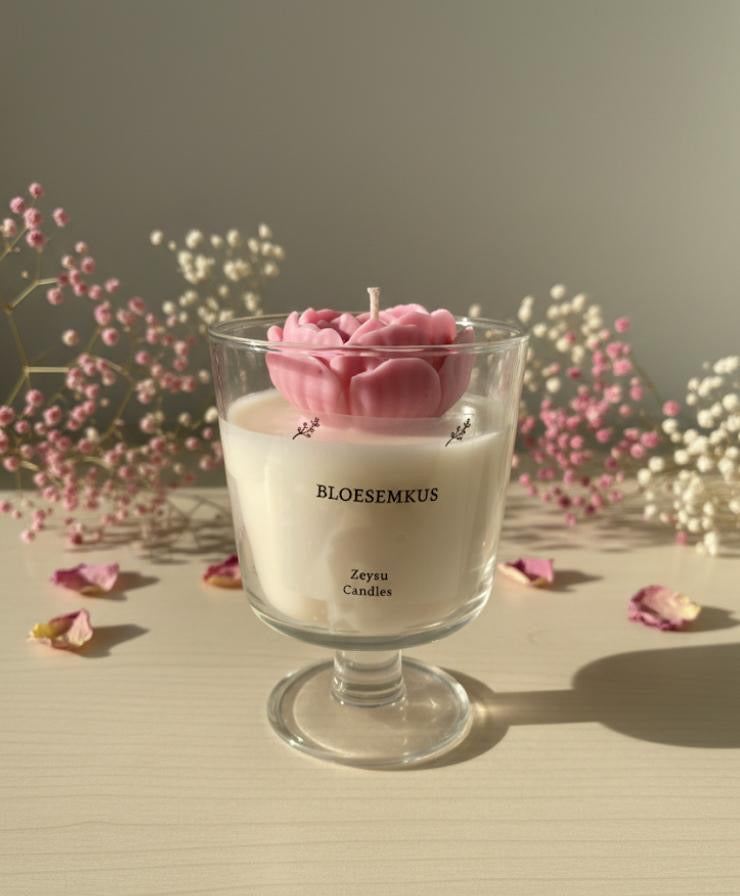 Sandelhout & Vanille - Handgemaakte Geurkaars Bloesemkus